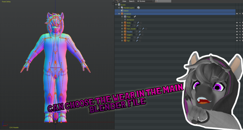 This modeling comes with a standard outfit of a Hoodie, T-shirt and Joggers. It also comes with a complete base for anyone to go ahead and edit as they please.