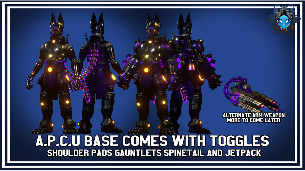 Modeling contains standard base of The A.P.C.U (Aetherium Powered Canine Unit) Updates will be coming down the line such as an outfit so stay tuned.